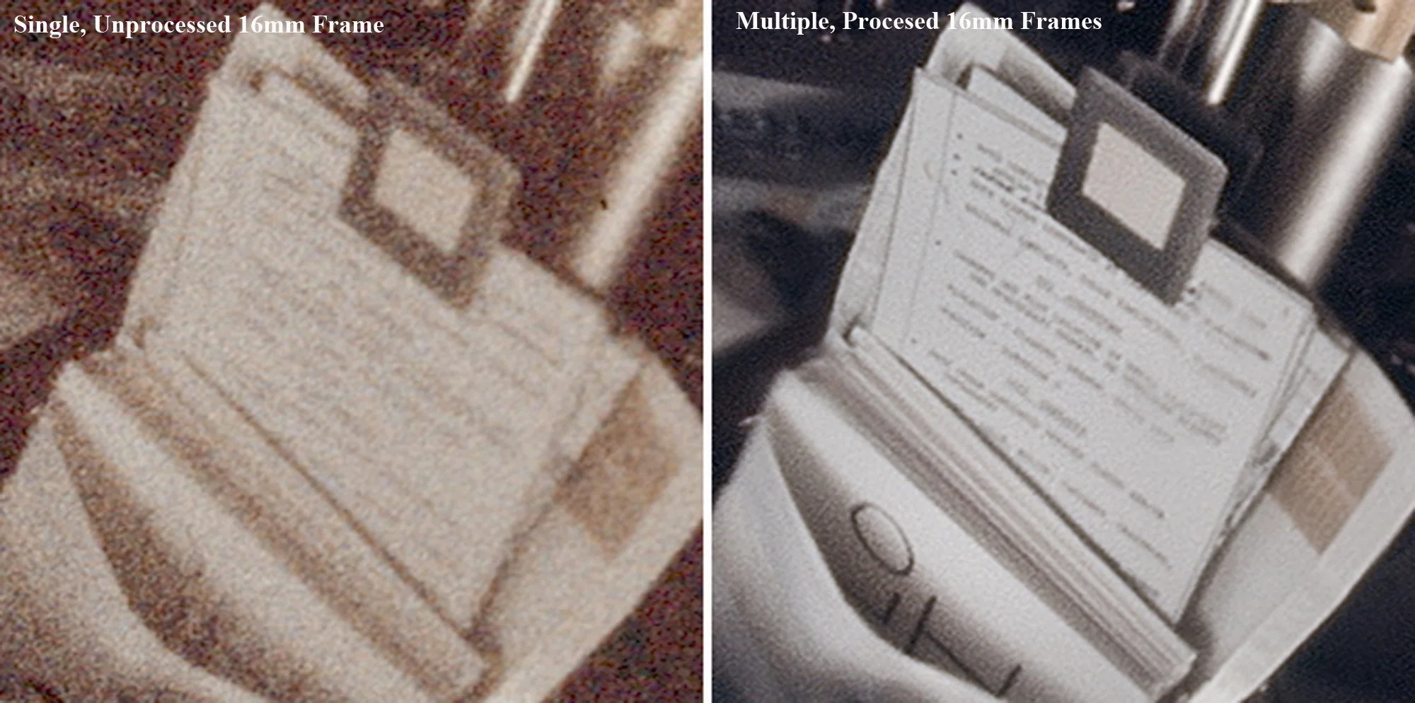 As many as several hundred separate frames are stacked, aligned and processed to produce a more photo-like output, revealing detail that has been lost for 50 years.